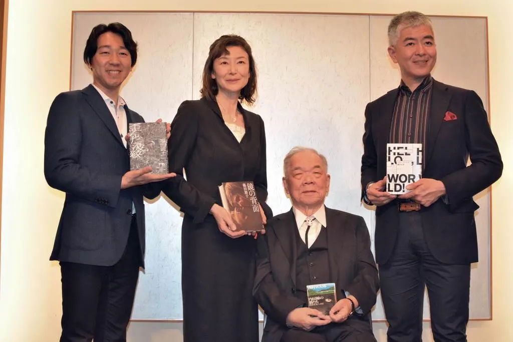 수상작 <헬로 월드>를 든 후지이 다이요 작가(오른쪽). 사진출처: 산케이신문 누리집